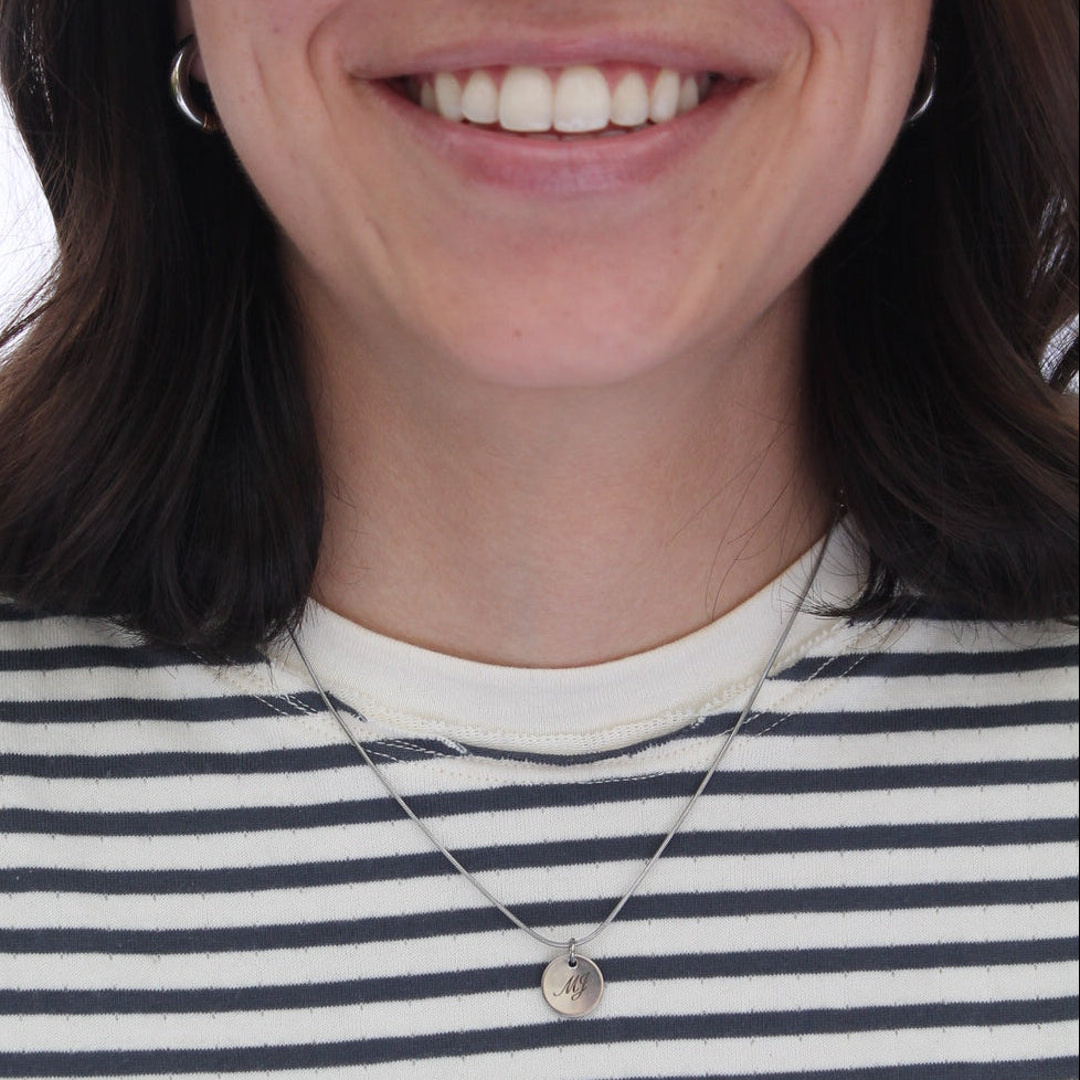 Like a thought you return to again and again, familiar and grounding. The engraved plate transforms a classic chain into a story you carry, close to the heart and made to stay.
